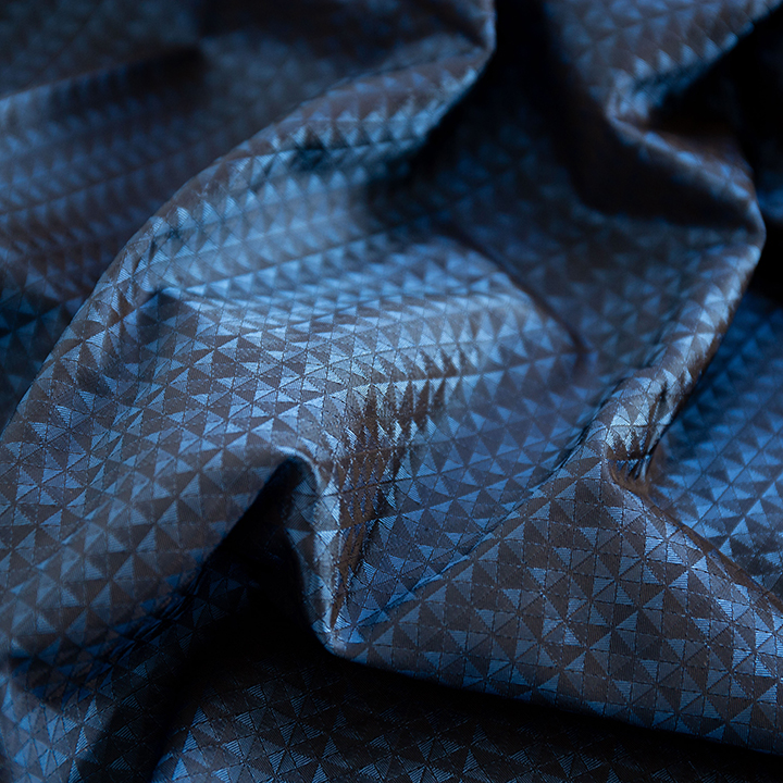 山梨県富士吉田市で、スーツ用の胴袖裏地や袖裏地などの裏地生産を主力に製造する織物工場です。裏地は「見えない部分の装い」を担うだけでなく、着用時の快適性とデザイン性を両立する重要な素材。オサカベでは、ドビー織機やジャカード織機を備えているため、ストライプやチェック、ブランドロゴ入りなど豊富な柄と質感を織り出し、多彩なデザイン表現に対応できる体制も強みです。