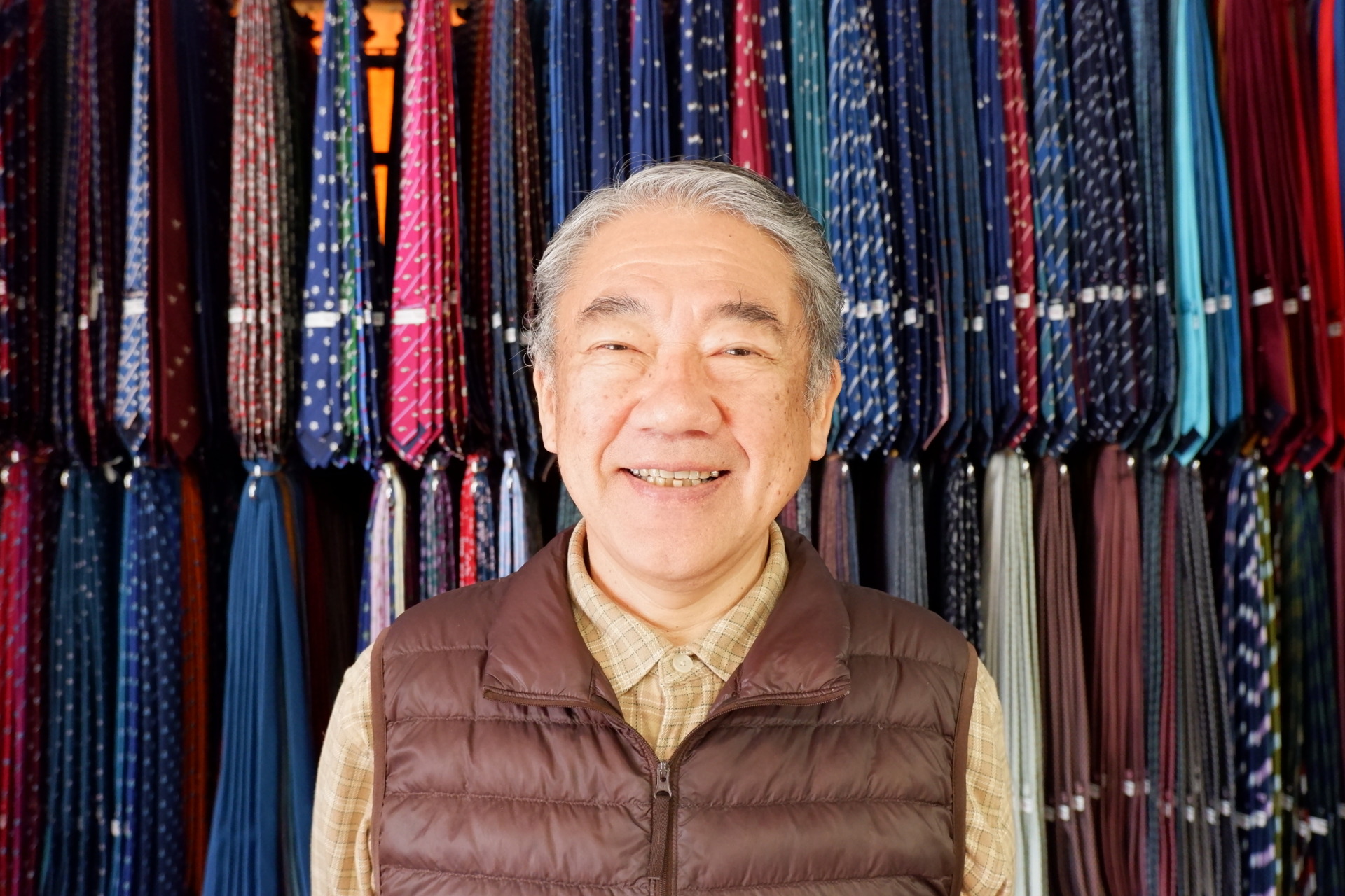 「『デザインできたけど、織れるハタヤがいない!』って相談を受けたことがあって。話を聞いたら織物の構造で形状を作る相談だった。デザインを織物にする設計はハタヤ。織れるかどうかはハタヤの腕次第なんだよ。」と語る山崎さん。その織物は山崎さんご自身で設計して、無事高級ブランドから製品化されたそうです。長い時は開発に半年ほどかけ、撚糸から対応するなど糸の開発からスタートすることもあるのだとか!両側二重織り等複雑な設計もこなします。そんな複雑な織物も得意とする山崎さんですが、専門は先染めのネクタイ。技術があるので精度の高い製品が生み出せるそうです。あり糸も数百種類あるので、スピーディーな対応が可能。織幅がある150cm幅のシルクとポリエステルが常に稼働しているので、服地用の織物をすぐ対応してもらえるのも嬉しいですね。山崎織物は、絢爛豪華な甲斐絹の技術を現代に復刻させようと始動したシルクプロジェクト甲斐絹座(KAIKI-ZA)のメンバーでもあるので、シルク等の開発も行っています。2017年7月にはファクトリーブランド富士桜工房が河口湖にある富士大石ハナテラスにオープンしました。富士山や桜をモチーフにしたネクタイが人気です。これまでWEBショップでお買い求めいただいていたお客様が直接お店にいらしてくださるようになったとか。「商品を作るにも、リスクがある。でも心配していてもしょうがないから『やっちゃえ〜!』の精神で進めてしまう」という山崎さん。織物の製造に困ったら、まずは山崎さんに相談してみてはいかがでしょうか?